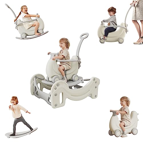 BanaSuper 5 IN 1 Giocattolo a Molla a Dondolo per Bambini Auto per Bambini con Maniglia di Sicurezza Carrozzina Scorrevole per Bambini in Età Prescolare (Grigio)