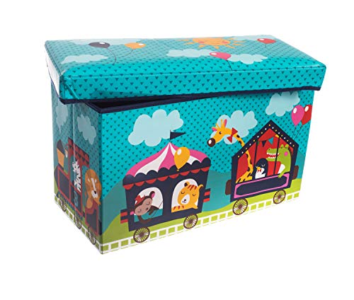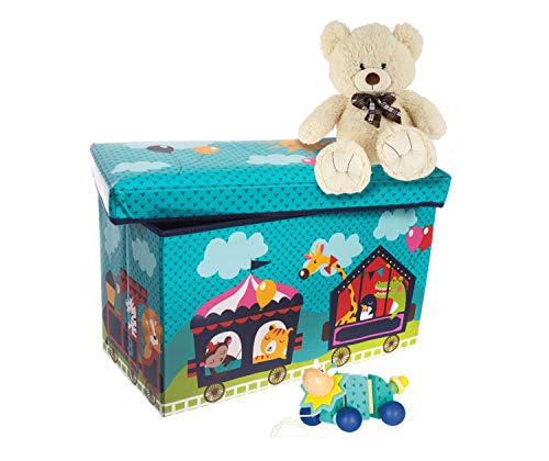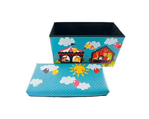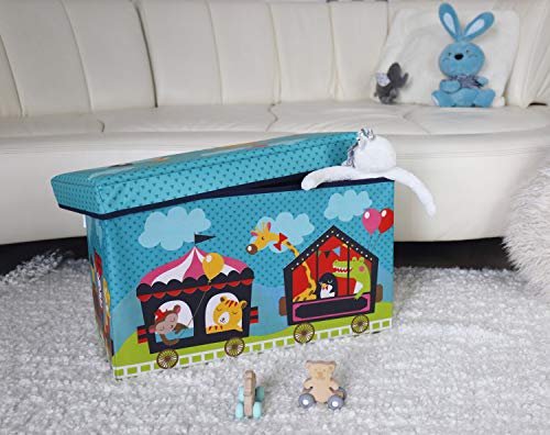 Bieco Scatola plastica con coperchio imbottito circo per bambini | Portagiochi bambini con scompartimento & coperchio | Cesta pieghevole turchese | 66 L Portagiochi Pieghevole 04000564