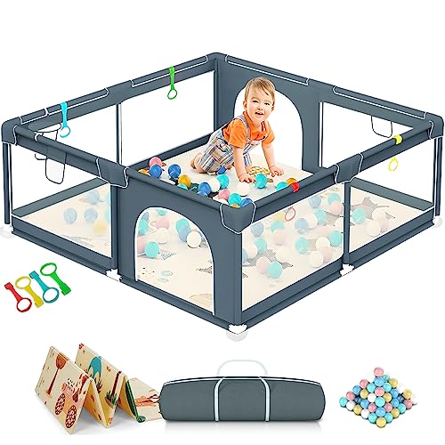 ROBUSTO, SICURO E DUREVOLE – Assicura la sicurezza del tuo neonato, bambino o bambino in questo spazioso box bambini di 6 piedi per 5 piedi (180 cm x 150 cm).Il nostro recinto per bambini è realizzato con pali in acciaio inossidabile, connettori in plastica, tessuto resistente alle lacrime di alta qualità e tappetini antiscivolo.