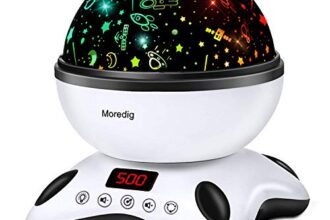 LUCE NOTTURNA SOFFUSA PER TRANQUILLIZZARE IL TUO BAMBINO AL BUIO – Premi il pulsante della luce per proiettare una galassia di stelle sul soffitto. La luce sfuma lentamente in diversi colori, per un sonno del neonato sicuro e tranquillo.