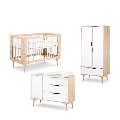 Cameretta completa lettino 60×120 – fasciatoio – LittleSky by Klups Sofie armadio a 2 ante – Faggio e bianco