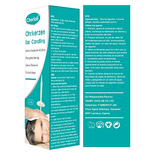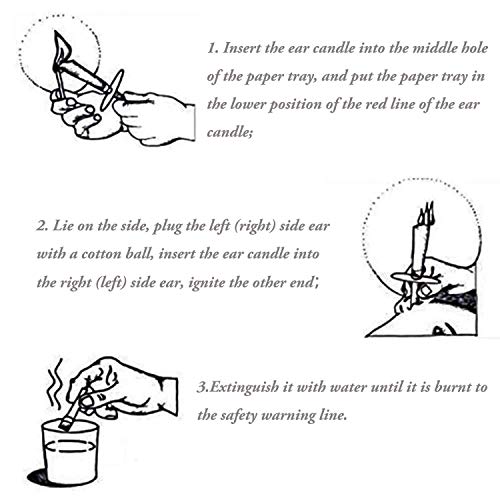 FACILE DA USARE – Dovrebbe essere sempre applicato da un’altra persona. Accendi la candela all’estremità vuota e posizionala in posizione verticale sul condotto uditivo. La candela dell’orecchio è posizionata correttamente quando non viene emesso fumo sul lato e si sente un piacevole scoppiettio.