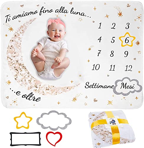 Chujayng Coperta Mesi Neonato Tappeto Mesi Neonato Per Maschio neonata femmina, Unisex Tema Luna E Stelle Regalo Baby Shower Personalizzato Per Neomam