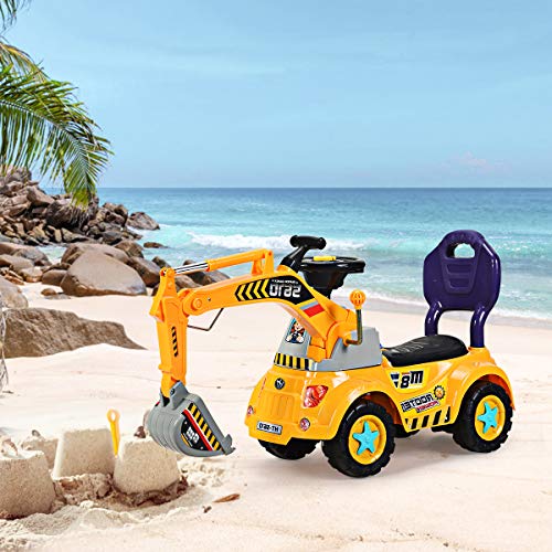 COSTWAY Ruspa Giocattolo Cavalcabile per Bambini Giocattolo Veicolo Cavalcabile, Dotato con Casco Giallo e 3 Pezzi di Giocattoli da Spiaggia, Adatto per Bambini di 3-5 Anni