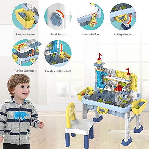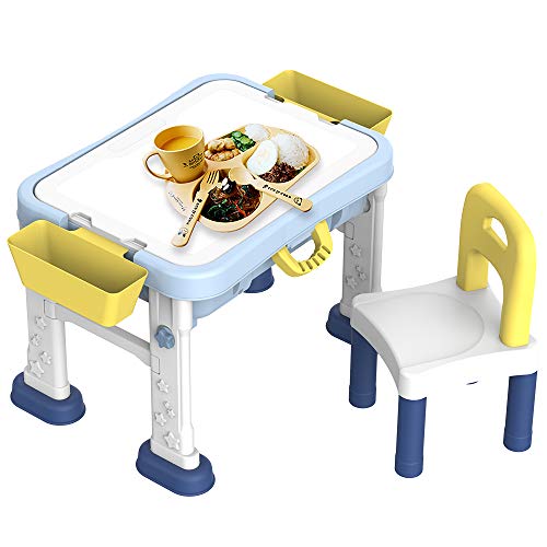 CARATTERISTICHE: questo tavolo per bambini ha una struttura rimovibile e versatile; Scrivania / lavagna / pannello per blocchi. Design portatile con maniglia. sedia inclusa.