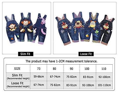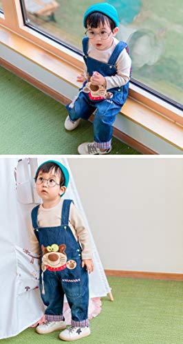 DEBAIJIA Bambino Ragazza Ragazzo Jeans Tuta Blu Salopette Denim Cartone Animato da Cartoon Orso – 100