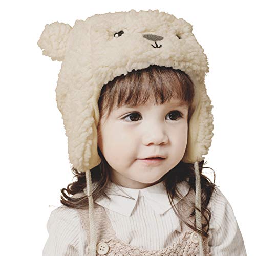 FOLDING Cappelli Aviatore Baby Boy And Girl Agnello Cappello di Lana Invernale Fleece Sci con paraorecchie Caldi Trapper (Color : Beige)