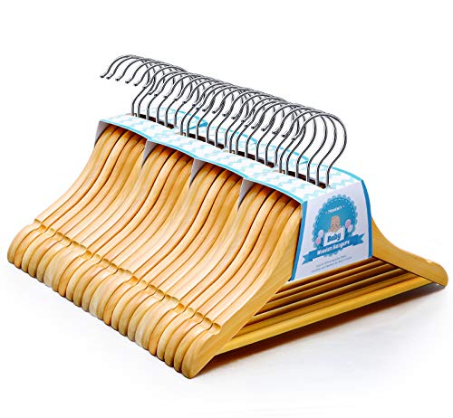 Dettagli del prodotto: set di 24 appendiabiti in legno per neonati, larghezza 30 cm, ideale per top, pantaloni, gonne, cappotti e vestiti spessi (circa 0-12 anni), non consigliato per gli adulti.