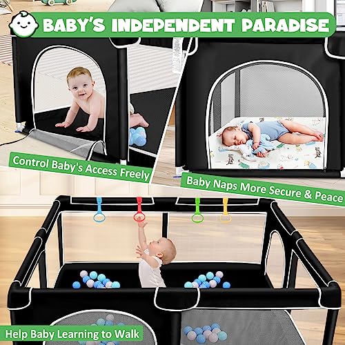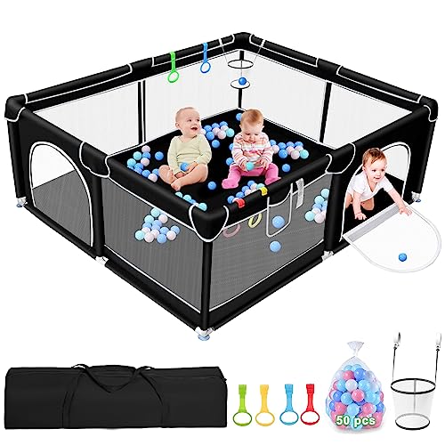 ✨【IL RECINTO BIMBI PREFERITO DAI BAMBINI】-Come si sa, i bambini sono sempre pieni di energia e curiosità. Questo box per bambini è dotato di 4 linguette a strappo, 50 palline oceaniche e un cestino per lanciare le palline oceaniche recinto bambini misura 150x180x66 cm. I più piccoli possono imparare a camminare e a giocare con le palline oceaniche nel box neonato, il che aggiunge interattività al recinto per bambini da interno e giocosità.