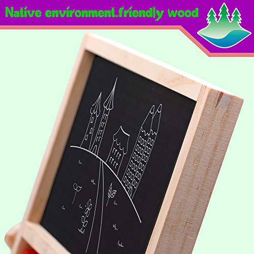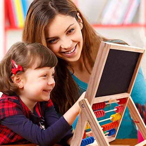 🎨 【Disegno del numero magnetico】 Lavagna e lavagna bianche a doppia facciata, include 40 pezzi magnetici di numero, 14 simboli di calcolo, 7 forme magnetiche di legno, 1 cavalletto con l’abaco.