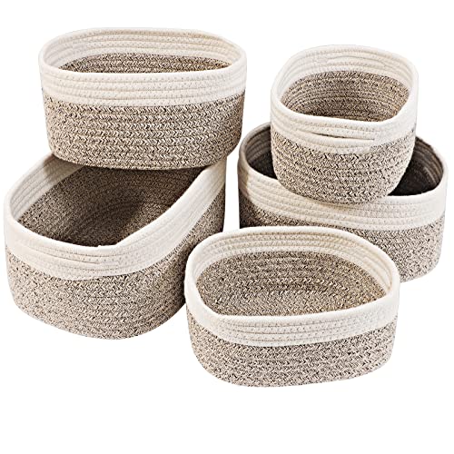 Lannvan Set di 5 Cestini Portaoggetti,Cestino Portaoggetti Intrecciato in Corda di Cotone per Bambini Bambina,Impilabile Organizer Fasciatoio,Cesto Portaoggetti Ceste Portaoggetti per Bagno