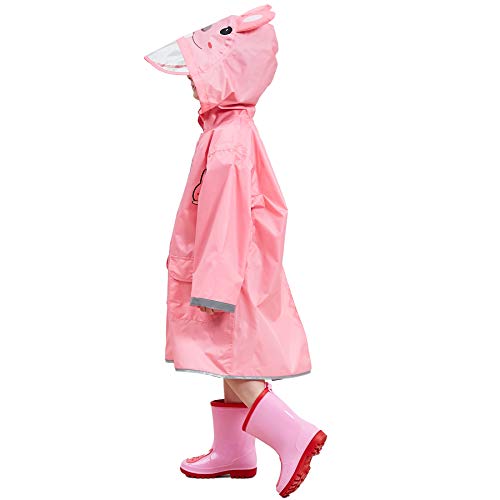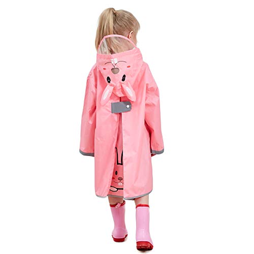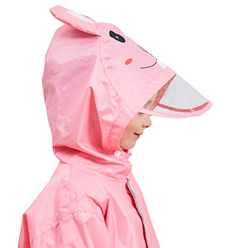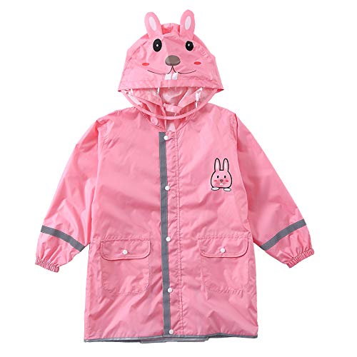 LIVACASA Impermeabile Bambina Poncho Pioggia Bambino Mantella Antipioggia Bimbo con Striscia Riflettente Leggero per I Bambini 2-10 Anni Rosa(Coniglio) Marca M 4-6 Anni/Statura: 110-125cm