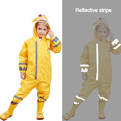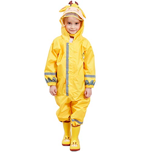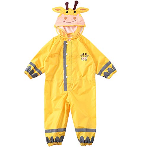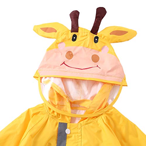 LIVACASA Tuta Impermeabile Bambino Poncho Antipioggia Bambina con Cappuccio Leggero con Striscia Riflettente Unisex per Bambini 3-10 Anni Giallo(Giraffa) Marca M 5-7 Anni/Statura: 105-115cm