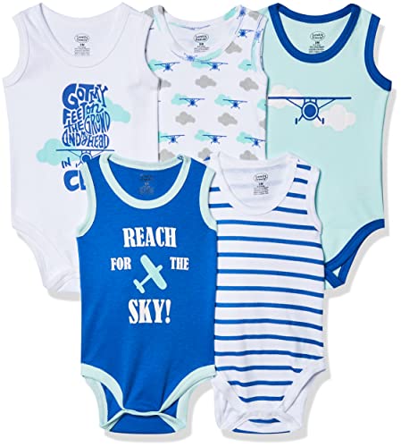Luvable Friends 5-Pack Lightweight Sleeveless Bodysuits Body, Aeroplano, 24 Mesi Bimba