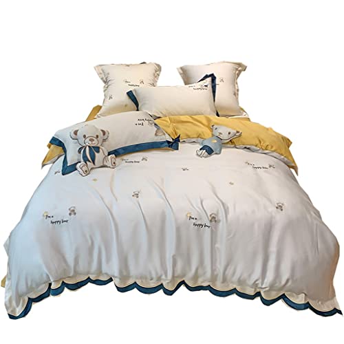 LZQDM Cartoon Lenzing Tencel Copripiumino in Quattro Pezzi con Ricamo Orso Biancheria da Letto Nuda setosa (Color : 5-Piece Suit, Size : 2m)