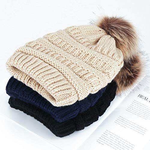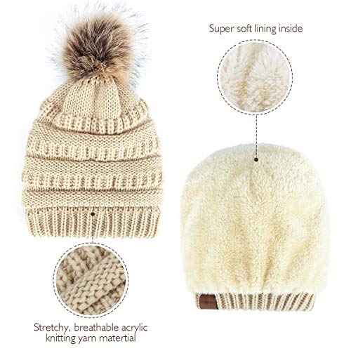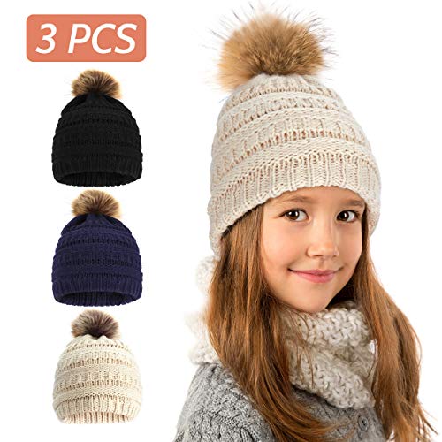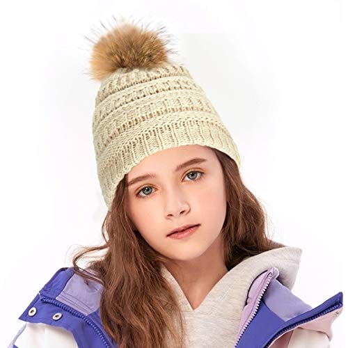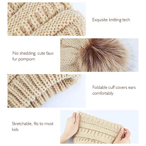 Makone Bambino Pom Beanie, Kids Winter Pom Pom Hat Cappuccio Foderato in Pile in Pelliccia Sintetica Bambini Cavo Beanie Berretto con Cappuccio da Teschio per Ragazze Ragazzi