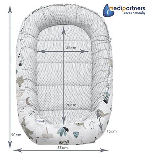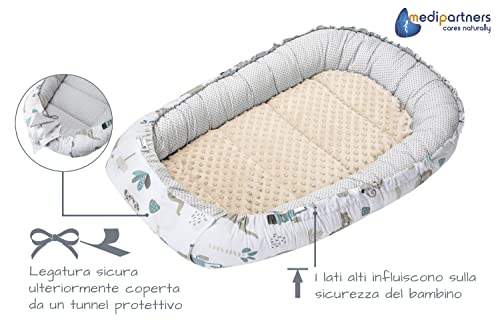 Medi Partners 5-Parti Nido per Bebè 100x60x15 Inserto Rimovibile Letto Cuscino Coperta bambini neonati 100% Cotone (Zoo di menta con Minky beige)