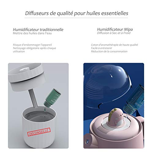 🦄 [Umidificatore design per neonati] Dopo aver trascorso 9 mesi nella pancia della mamma, il bambino è molto sensibile alla qualità del suo ambiente. Con una tecnologia ultrasonica molto silenziosa a vapore freddo, Mipa umidificatore rispetta l’igrometria perfetta per il benessere del tuo bambino. La sua potenza di umidificazione di 40 ml/h è ideale per garantire il tasso di umidità consigliato nella camera dei bambini e garantisce la qualità del sonno.