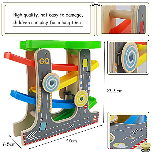 🍬Giochi in legno per bambini 3 anni- Pista macchinine in legno è uno di quegli giocattolo per bambini classici, dai bambini grandi ai bambini piccoli, tutti amano guardare l’mini auto cadere giù. Ottimo regalo di Natale e regali di compleanno.