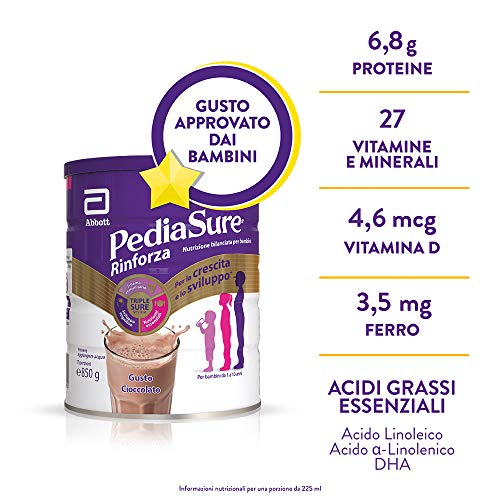Pediasure – Integratore per Bambini con Vitamine, Minerali, Proteine | per Difese Immunitarie, Inappetenza, Concentrazione | Confezione 850g | Gusto Cioccolato