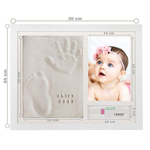 PITI COT Cornice Impronte Neonato | Kit Lettere Numeri e Porta Braccialetto Nascita | Regalo per la Nascita Maschio Battesimo Femmina | Calco Mani e Piedi Bambino in Argilla | Decorazione Cameretta