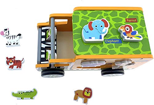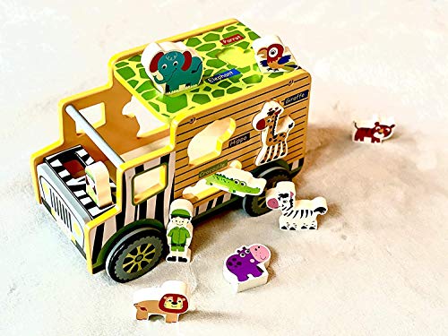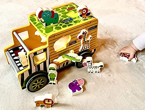 RB&G Camion safari in legno/Vari animali con cui attaccare e giocare / 2 rangers/Ruote silenziose Nome del prodotto