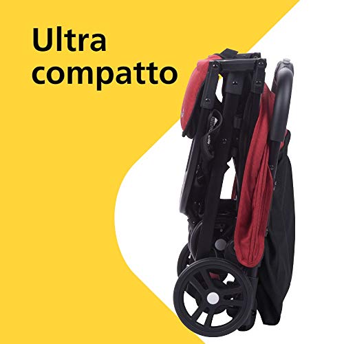 Passeggino ultra compatto: dimensioni ridotte quando chiuso (54x41x16cm), indicato per i viaggi (in auto, treno, aereo)