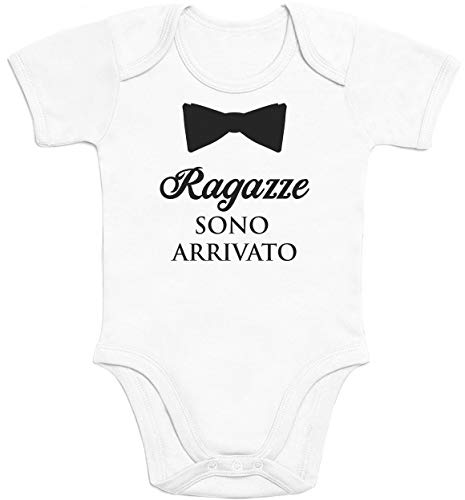 Shirtgeil Ragazze Sono Arrivato con Papillon – Regalo Neonati Body Neonato Manica Corta 3-6 Mesi Bianco