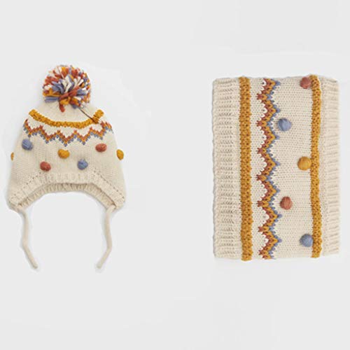 SJYDQ. New Winter Mano all’Uncinetto Colorfully Pompom Cappello Lavorato a Maglia e Sciarpa a Infinito tricottata per Neonate Bambini Bambini Bambini (Color : White, Size : Small)