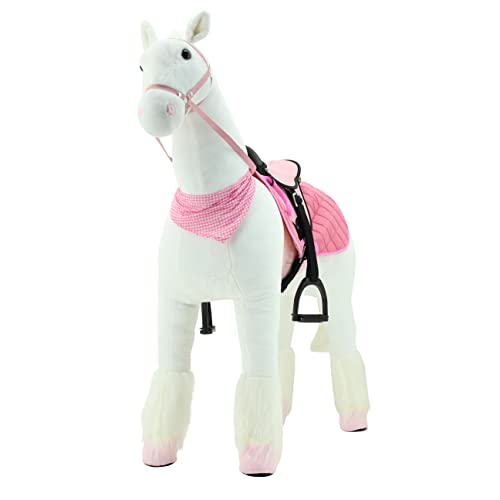 Sweety Toys 13883 – Cavallo in peluche, robusto, XXL, con base in acciaio, altezza 130 cm, cavallo da equitazione, 130 cm, bianco con sella rosa con staffe
