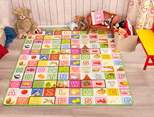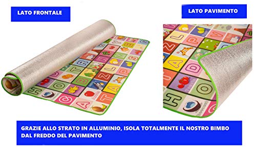 Tappeto Gioco Bambini, Tappeto Neonato, Misure 200×180 cm Con Lato Isolante Termico, Antitrauma, e morbidissimo, Tappeto Da Cameretta, con Disegni, Numeri e Colori