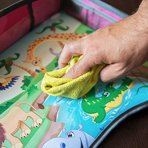 ✔️ STRUTTURA ROBUSTA E STABILE – La scrivania e le tasche portaoggetti laterali hanno uno strato extra rigido per aumentare la robustezza del tavoilnetto e per migliorare l’utilizzabilità soprattutto durante l’utilizzo a terra dove le ali portaoggetti, ben incastrate sotto le gambe del bimbo fungono da fermi (NON è un tavolo che sta in piedi da solo!). La cinghia è ben dimensionata per essere utilizzata nel seggiolino auto o come tracolla . Il design la rende una valigetta pieghevole.