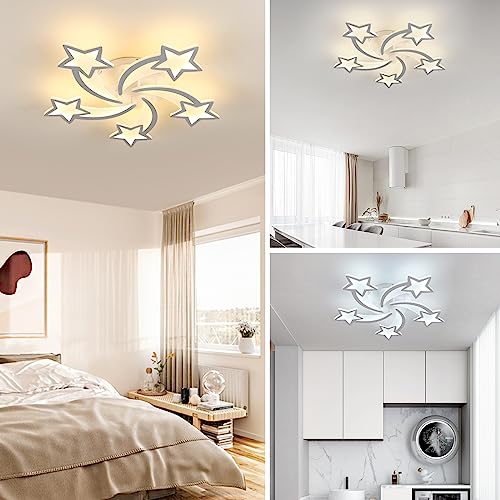 ⭐Design Creativo: La plafoniera LED adotta un design creativo a forma di stella con corpo bianco, dall’aspetto elegante e conciso. È adatta a vari ambienti, come soggiorno, camera da letto, camera dei bambini, camera delle ragazze, sala da pranzo, ecc.