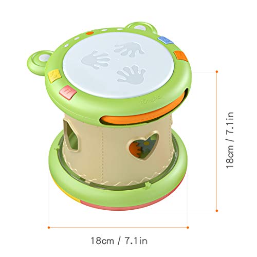 【Giocattoli musicali portatili】2020 Versione Aggiornata musicali tamburo per bambini(alimentato da 3 x 1,5 V AABatterie,non incluso nel pacchetto): ci sono 12 suoni di animali e 8 canzoni per bambini e 8 suoni di batteria diversi nei giocattoli, e il bambino può suonare la batteria a mano per produrre suoni diversi,Questo giocattolo musicale ha altre caratteristiche come canzoni, colori e suoni di animali, filastrocche e musica per piano. ottimo per i tuoi piccoli sviluppo sensoriale.
