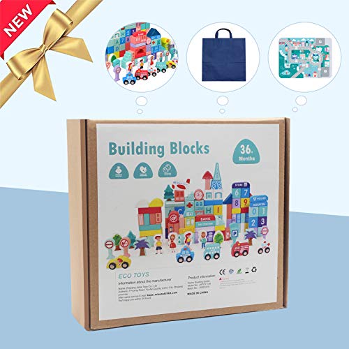🔸 【DIMENSIONE CONFEZIONE】: 18,3 * 15 * 6,4 cm Con 1 pezzo di puzzle di carta e 108 pezzi di blocchi di legno. Città colorate che costruiscono giocattoli e alberi, veicoli, cartelli, attività.