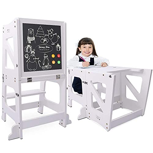 【Costruzione Pieghevole Unica】Questa torre di apprendimento per bambini consente ai bambini di età compresa tra 18 mesi e 3 anni di provare più cose alla giusta altezza. Può essere utilizzato come un normale sgabello per gradini, inoltre può essere trasformato in un banco di scuola.